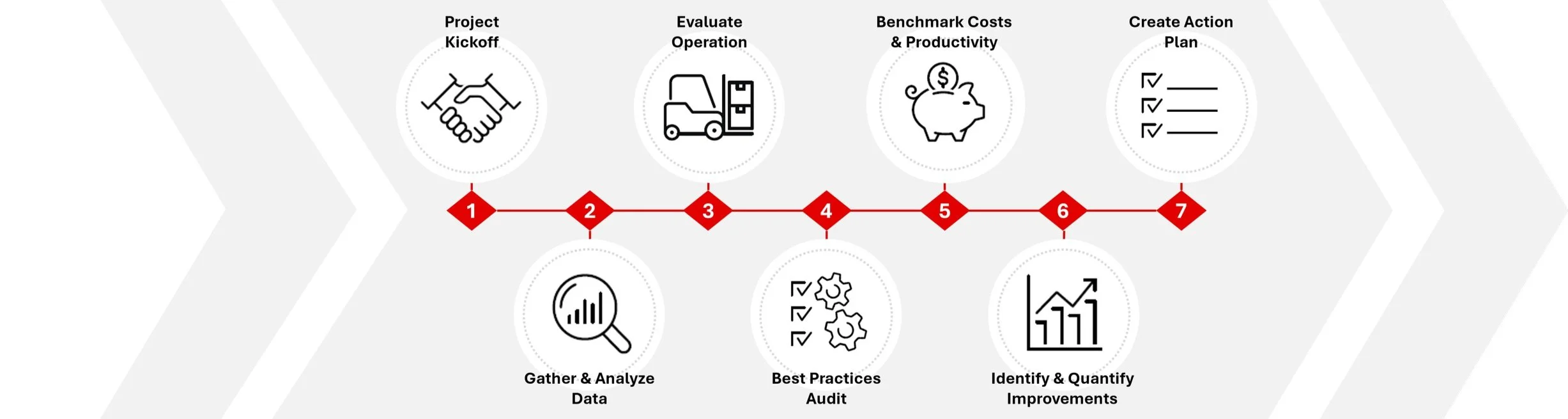 Benchmarking Against Industry Best Practices: Comparison of warehouse and fulfillment processes against Best Practices to identify areas for improvement within the operation.
